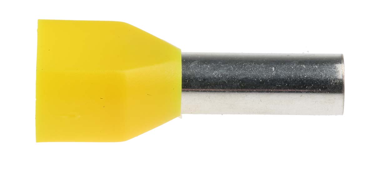 This is Insulated Crimp Bootlace Ferrule 14mm Pin Length 4.9mm Pin Diameter 2 x 6mm² Wire Size Yellow manufactured by RS Pro. The manufacturer part number is 311-8003. The pin is 14mm long. Its maximum wires size includes 10 awg. It has a decent yellow colour. While the minimum wire size AWG includes 10 awg. Its terminal is made using copper tube material . It has a robust nylon insulation material. It has an overall length of 26.1mm. Insulation Option: insulated. The pin has 4.9mm caliber. crimp bootlace ferrule is a versatile product designed to provide user-defined applications.