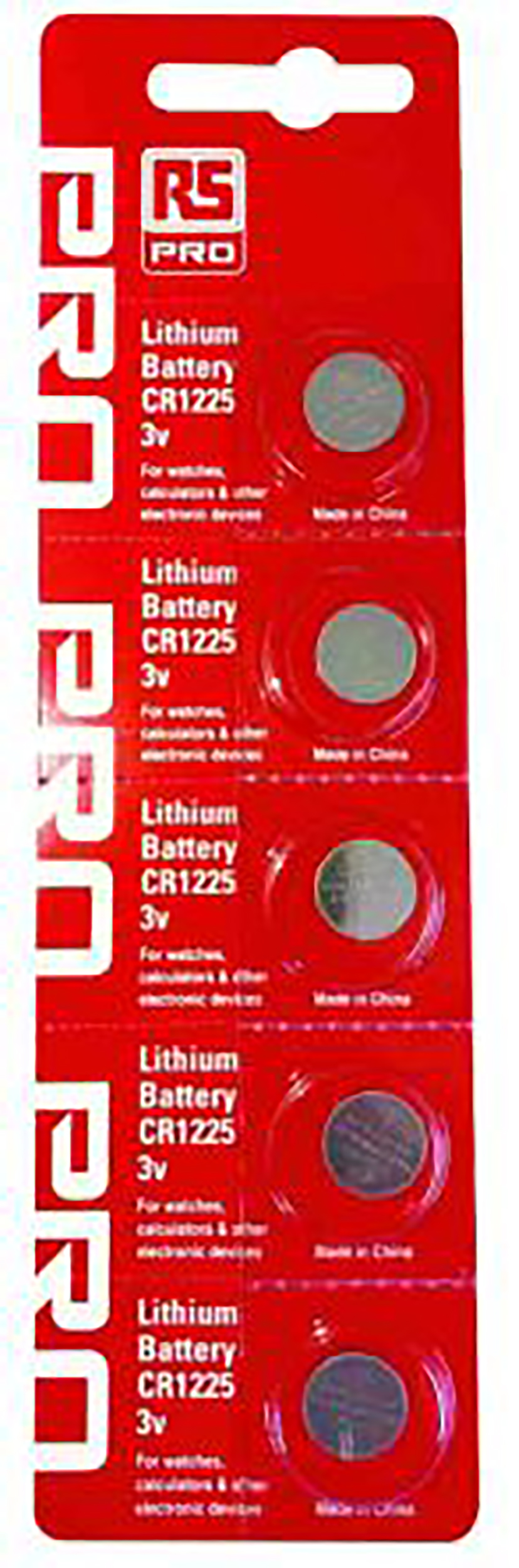 This is CR1225 manufactured by RS PRO. The manufacturer part number is 183-4297. Its diameter is 12.5 mm. button battery is a versatile product designed to provide user-defined applications. The typical product's weight is 0.9g. It has about 50mah battery capacity . The product cr, is a highly preferred choice for users. The product is designed with a standard termination. The nominal voltage of the product is 3v. It includes 5 batteries . It has a/an lithium manganese dioxide chemistry .