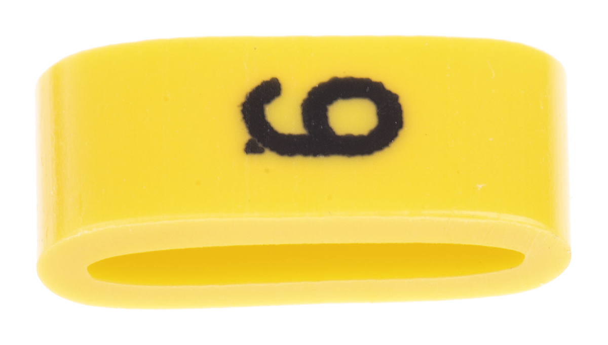 This is Ovalgrip Slide On Cable Marker Pre-printed 9 Black on Yellow 2.5 → 6mm Dia. Range manufactured by HellermannTyton. The manufacturer part number is 901-10487. It is fixed using slide-on method . It has a maximum operating temperature of 105°c. The minimum cable diameter is 2.5mm. In addition, it has a/an pre-printed type marker . It has a printable feature no . The product ovalgrip, is a highly preferred choice for users. The product is made from highly stable and reliable polyvinyl chloride. Furthermore, the product is 4 mm wide. Its accurate length is 4.5mm. Whereas, the minimum operating temperature of the product is -65°c. While the maximum dimeter of the cable is 6mm. cable marker is a versatile product designed to provide user-defined applications. Legend Information: 9.
