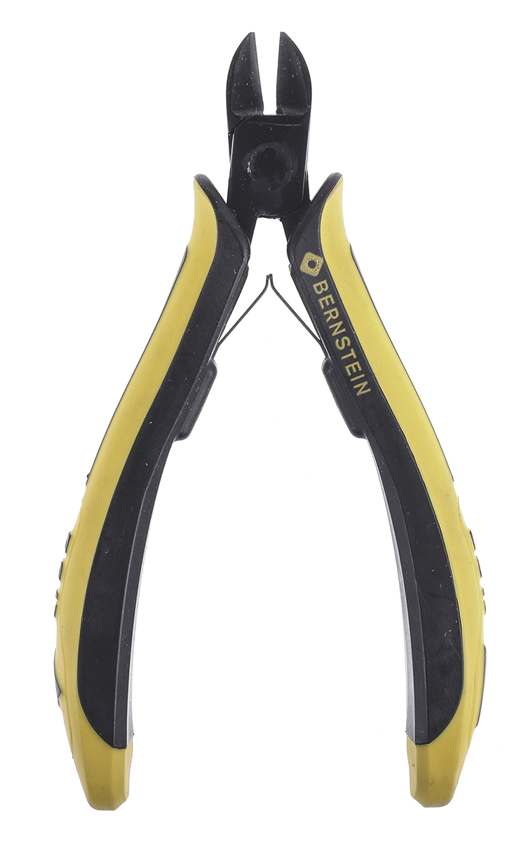 This is Side Type Wire Cutter 125mm overall length 1.5mm cutting capacity manufactured by Bernstein. The manufacturer part number is 3-654-15. It jaw is about 13mm in length . Moreover, it has a maximum 1.5mm cutting capacity . nipper & diagonal cutter is a versatile product designed to provide user-defined applications. It has an overall length of 125mm. It has a/an semi-flush type cut . Applications Information involves holding, crimping, cutting, esd protected area, cable stripping, electronic, stripping, wire handling. dissipative insulated handle is the Grip Material of the product . ESD Safety - yes. It has standard 11mm jaw width .