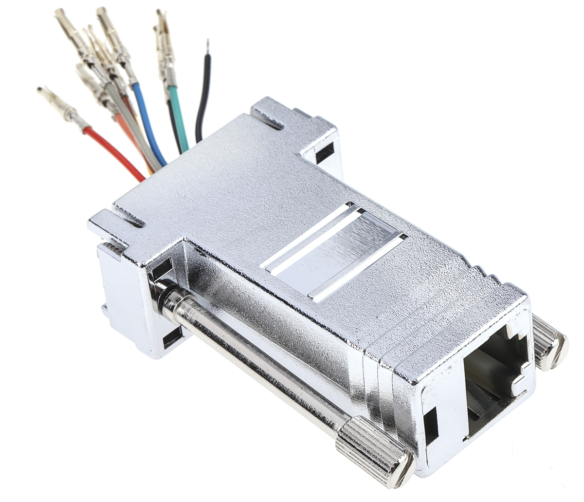 This is MHDA Series Modular RJ45 Jack Adapter for use with 9 Way D-Sub Connector manufactured by RS Pro. The manufacturer part number is 382-2695. The product has a straight orientation. It converts from 9-way d-sub type . Its accurate length is 15.5mm. d-sub adapter is a versatile product designed to provide user-defined applications. It has a press fit type mount .