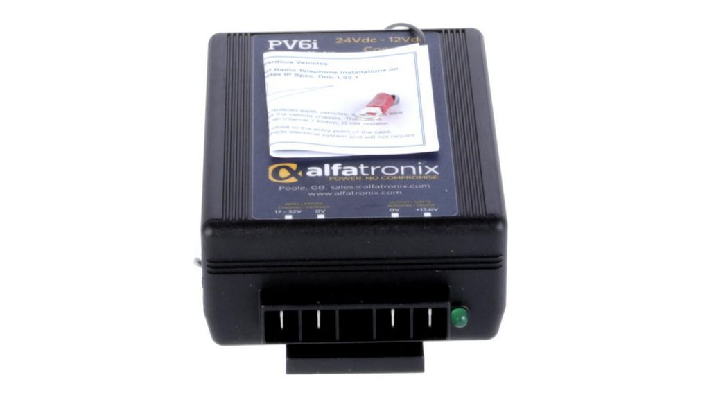 This is PV DC-DC Converter 13.6V dc/ 6A Output 17 → 32 VDC Input 72W Clip Mount +30°C Max Temp -25°C Min manufactured by Alfatronix. The manufacturer part number is PV6I. Additionally, the product is supplied with 1 outputs. The product offers a maximum 72w output power . The typical product's weight is 405g. It is a highly efficient product with an 0.85% of high efficiency. Whereas, the minimum operating temperature of the product is -25°c. The product pv, is a highly preferred choice for users. Its accurate length is 127mm. Furthermore, the product is 87 mm wide. The product comes in 50mm depth. The product has 17v dc of minimum input voltage. dc/dc converter is a versatile product designed to provide user-defined applications. It has a maximum operating temperature of 30°c. 17v dc is the maximum voltage of the bespoke product. It has a clip type mount .