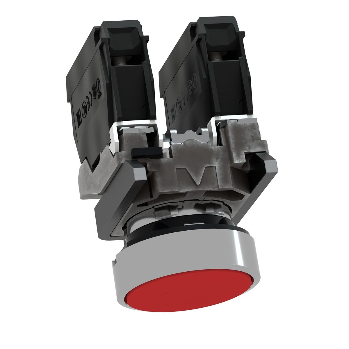 This is BOUTON POUSSOIR ROUGE 1 manufactured by Schneider Electric. The manufacturer part number is XB4BA45. Illumination Option no. It is IP rated with ip69k, ip66, ip67, ip69. The product harmony, is a highly preferred choice for users. This pushbutton has a flush style pushbutton and is easy to use. Pushbutton is manufactured from highly rugged and reliable chrome plated metal material. The product is certified with csa, ul hazardous area certification. It has start/stop marking on push button . Whereas its cut-out diameter is 22.5mm. emergency stop push button head is a versatile product designed to provide user-defined applications. While it has an adorable red colour. The push button has spring return actuation mechanism. In addition, the push button diameter of the product is about 22.5mm .