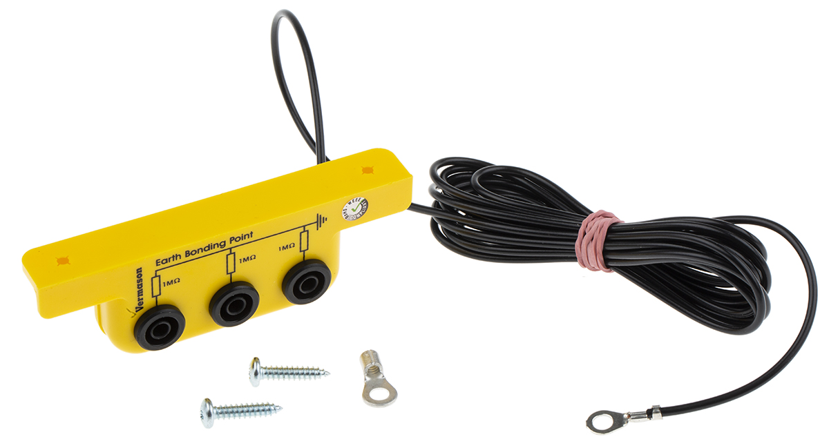 This is ESD Earth Bonding Bracket with 4 mm Banana Stud x 3 manufactured by RS Pro. The manufacturer part number is 287-7509. It is a type of earth bonding bracket accessory. 4 mm banana stud Connector type offer robust functionality. The product is designed with a ring terminal termination. esd earth bonding bracket is a versatile product designed to provide user-defined applications.
