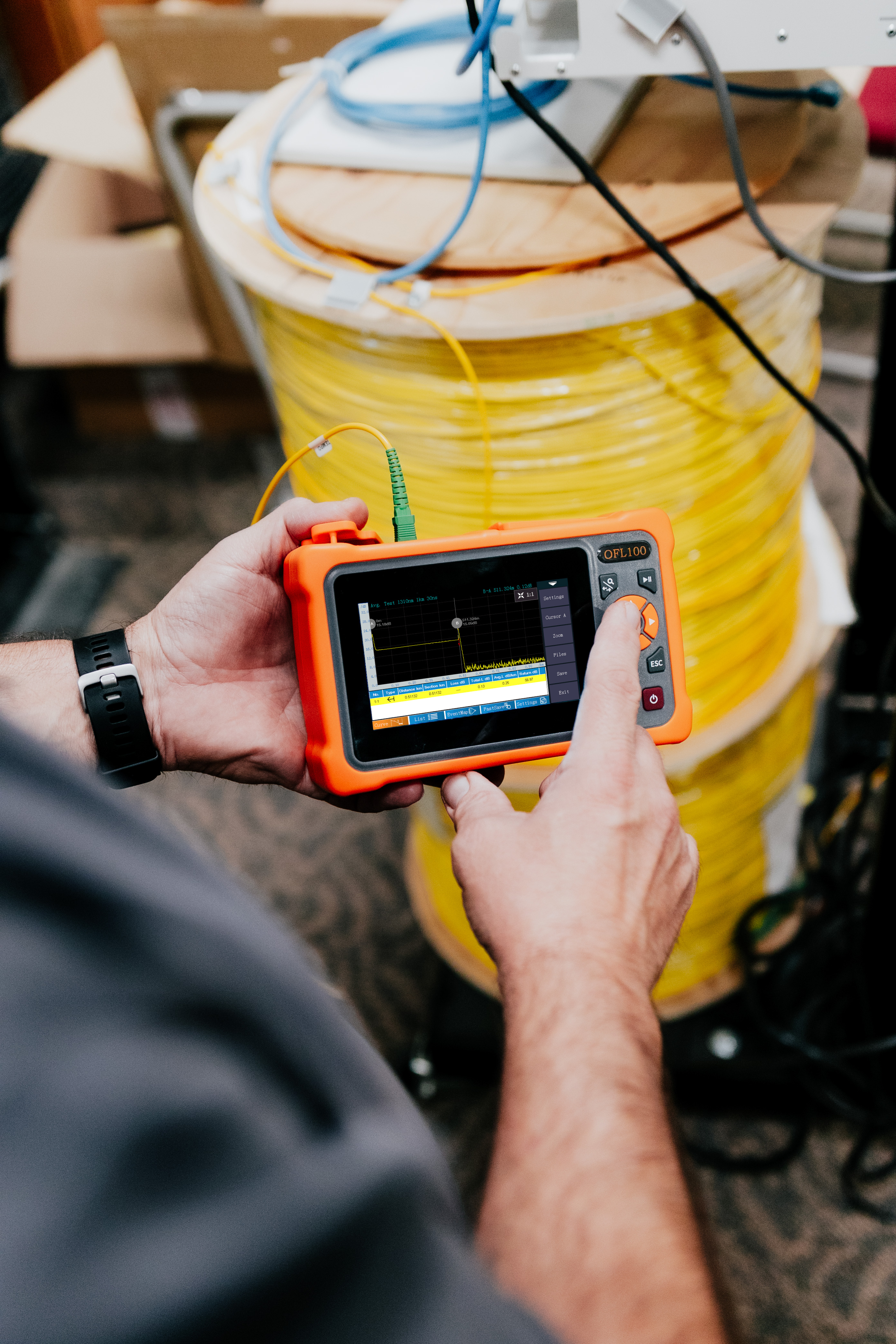 This is RJ45 Optical Time Domain Reflectometer manufactured by Tempo. The manufacturer part number is OFL100-EU. Moreover, the product gets power from 100 to 240 v ac. Furthermore, the product is 109 mm wide. Its battery life is about 12h . It has a model number ofl100-eu fibre otdr. The product is also supplied with power supply with usb cable, sd card, adapter. It has 26dbm of maximum power measurement . This 3.7 v, 4ah lithium-ion battery is comparatively much efficient than common batteries. fibre tester is a versatile product designed to provide user-defined applications. It has a maximum operating temperature of 50°c. The product is a special optical time domain reflectometer equipment. Its accurate length is 173mm. It is a type of usb type c interface. Features 0.01 db resolution. The typical product's weight is 0.5kg. It is a typical rj45 cable. The plug is a highly reliable us, eu, uk with long service life. In addition, the height is 45mm. Whereas, the minimum operating temperature of the product is -10°c. It has a typical wavelength of 1550nm.