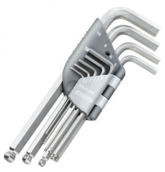 This is L Shape Hex Key Set 9 pieces Stainless Steel manufactured by Facom. The manufacturer part number is 83SHST.JP9A. It has hex end and is easy to use. The product is made from highly stable and reliable stainless steel. It is a l product with unique specifications. hex key set is a versatile product designed to provide user-defined applications. The product consists of 9 pieces.