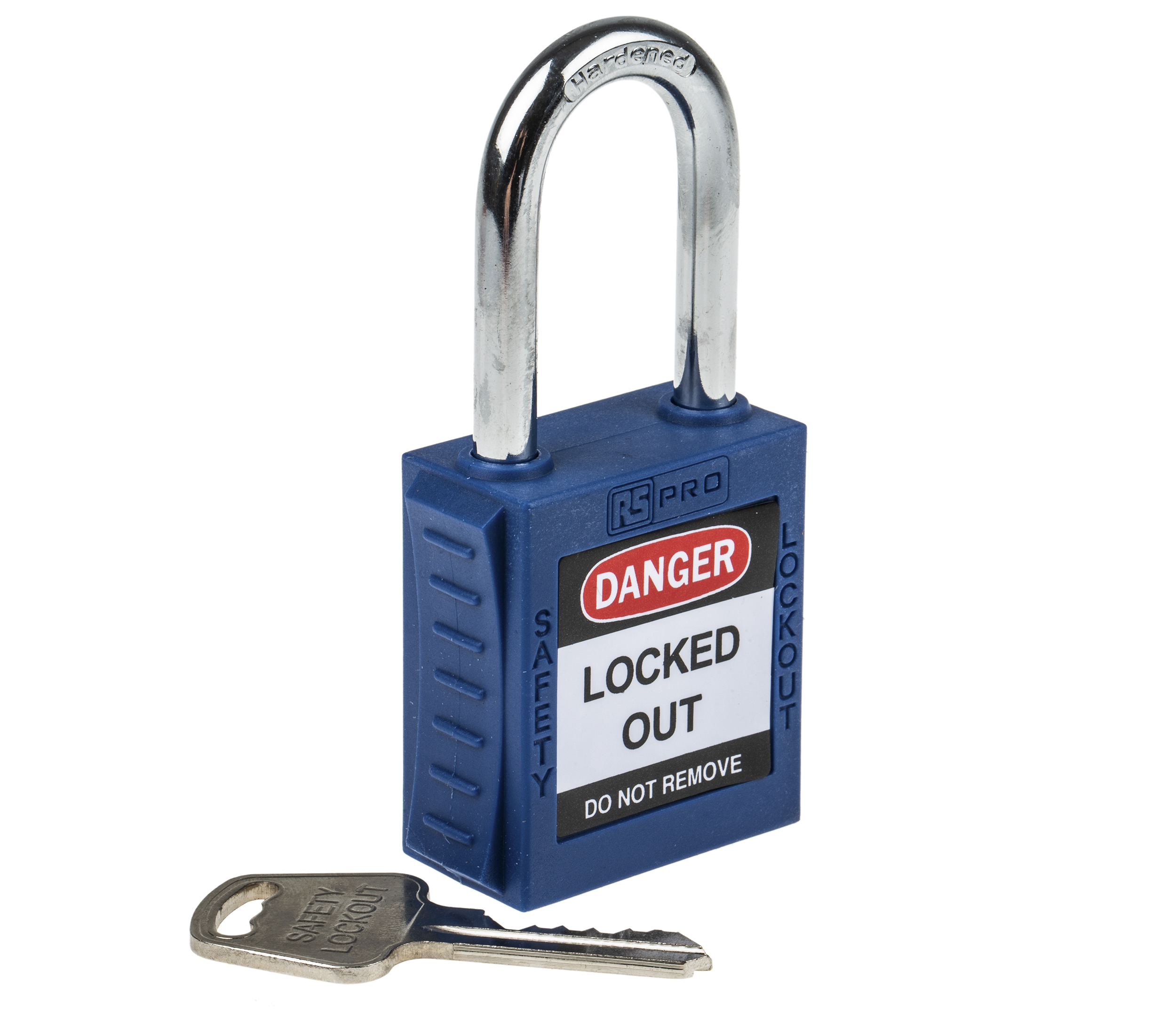 This is All Weather Safety Padlock 38mm manufactured by RS PRO. The manufacturer part number is 196-3753. It includes 1 number of locks . It has a decent blue colour. The product is made from highly stable and reliable steel, nylon. Its shackle is about 38mm in length . Its overall shackle diameter is approximately 6.35mm . lockout is a versatile product designed to provide user-defined applications. Its sub type is safety lockout .