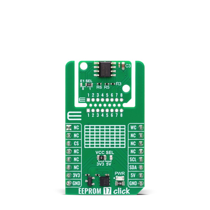 This is EEPROM Click EEPROM Development Board for Add On Board for Data Storage manufactured by MikroElektronika. The manufacturer part number is MIKROE-6641. This kit is known as eeprom click, consists of highly versatile and user-desired tools. Featured Device add on board. It is a type of eeprom memory type. It holds a typical memory size of 512bit. It is a type of i2c interface. The kit is classified as development board. The product is highly suitable for data storage. development board is a versatile product designed to provide user-defined applications.