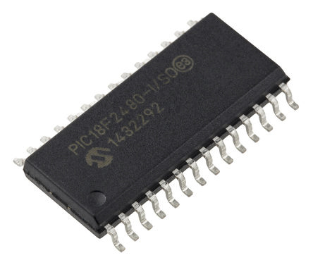 This is 8bit PIC Microcontroller 40MHz 16 kB 256 B Flash 28-Pin SOIC manufactured by Microchip. The manufacturer part number is PIC18F2480-I/SO. Furthermore, the product is 7.5 mm wide. In addition, 16kb is the program memory size. In addition, the height is 2.35mm. The product complies with automotive standard - no. It comprises 4 timers. The product has typical 768bit RAM size. Moreover, the data bus width includes 8bit. The instruction set has risc architecture. It is a flash program memory type. It has a minimum 2v supply voltage . The package is a sort of soic. In addition, it has a maximum clock frequency about 40mhz . microcontroller is a versatile product designed to provide user-defined applications. It has a maximum operating temperature of 85°c. On the other hand, the pic is the device core. Its accurate length is 17.9mm. It is a type of sci interface. It contains 28 pins. It has a surface type mount . The product pic18f2480, is a highly preferred choice for users. The product requires a maximum 5.5v supply voltage . The ADCs included 8 x 10 bit. Whereas, the minimum operating temperature of the product is -40°c.