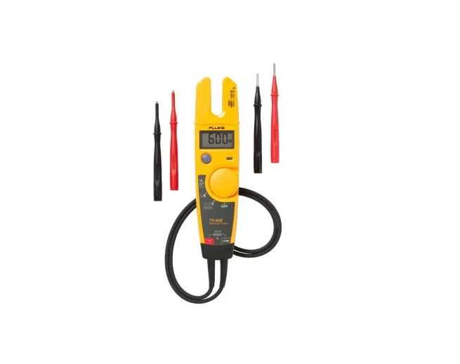 The Fluke T5-600 is a compact digital multimeter made for everyday electrical testing. It is primarily used to check voltage, current, and continuity in commercial and light-industrial systems. With support for up to 600V AC/DC and current measurement up to 100A AC, it covers most routine electrical work without needing multiple tools. This meter is built for field electricians who want quick readings without overcomplicated settings.