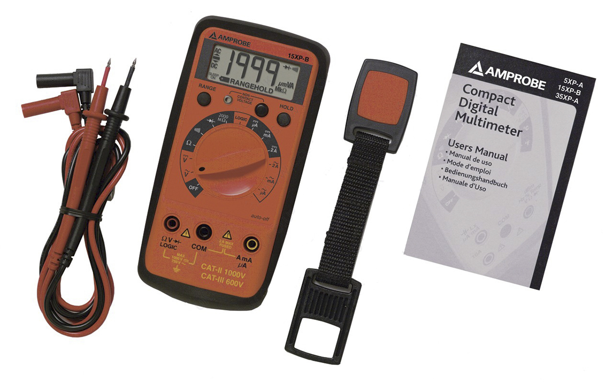 This is 15XPB Handheld Digital Multimeter 2A ac 600V ac 2A dc 600V dc with RSCAL calibration manufactured by Amprobe. The manufacturer part number is 15XP-B. Moreover, the product gets power from battery. Furthermore, the product is 72 mm wide. Its battery life is about 200h . It has a True RMS feature no . It has a model number 15xpb. It features 500hz of maximum frequency. It has a maximum operating temperature of 50°c. Moreover, its safety category level is cat ii, cat iii . Its accurate length is 32mm. The product has a maximum 2ω resistance measurement . It features a remarkable digital display. multimeter is a versatile product designed to provide user-defined applications. The typical product's weight is 210g. The product 15xp-b, is a highly preferred choice for users. Its safety category voltage is 600v . It has a standard handheld type multimeter . In addition, the height is 155mm. Whereas, the minimum operating temperature of the product is 0°c. It has a resistance resolution about 100mω . Moreover, it has an ac current, ac voltage, dc current, dc voltage, diode test, logic test, resistance functions measured .