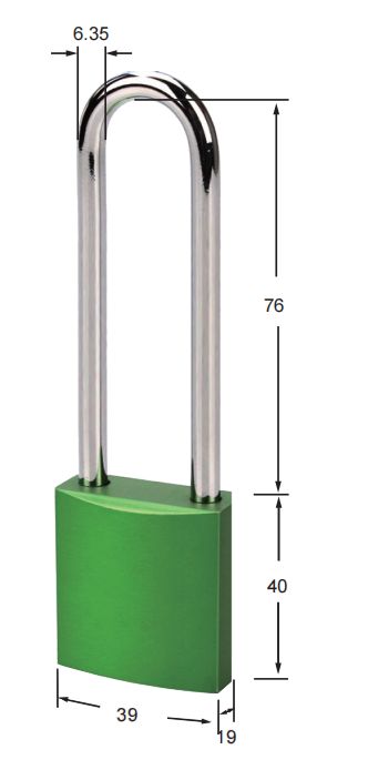 This is Key Aluminium Padlock 6.3mm Shackle 39mm Body manufactured by RS PRO. The manufacturer part number is 217-692. Additionally, it is for indoor & outdoor . Its overall shackle diameter is approximately 6.35mm . Applications Information involves general purpose. It has a decent green colour. The product is made from highly stable and reliable aluminium. It contains 1 item per package . Furthermore, the product is 39 mm wide. Additionally, it has a/an key type lock . padlock is a versatile product designed to provide user-defined applications. It is keyed alike no . Its shackle is about 76mm in length .