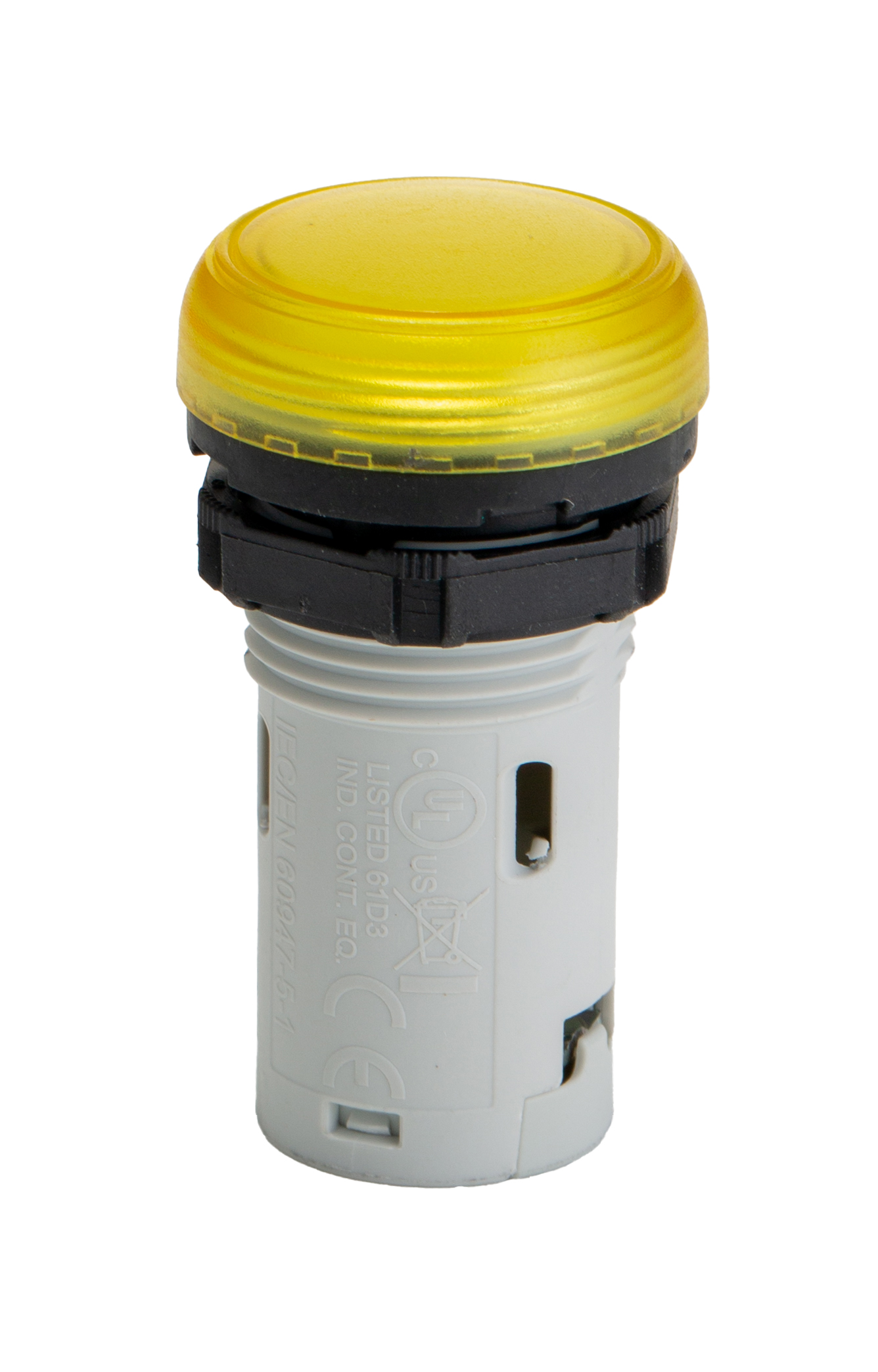 This is LPML Panel Mount Yellow LED Pilot Light 22mm Cutout IP66 IP67 IP69K Round 48V manufactured by Lovato. The manufacturer part number is LPMLD5. pilot light is a versatile product designed to provide user-defined applications. It is IP rated with ip69k, ip66, ip67. Its pilot light is of yellow colour . The product lpml, is a highly preferred choice for users. Its bezel material is polyamide . The product is certified with no hazardous area certification. The product's body is nicely designed from polyamide materials. It carries a 48 v of voltage. Whereas its cut-out diameter is 22mm. It is a type of led lamp. It is designed with an attractive round shape pilot light . The terminal is a screw type. It has a panel mount type mount .