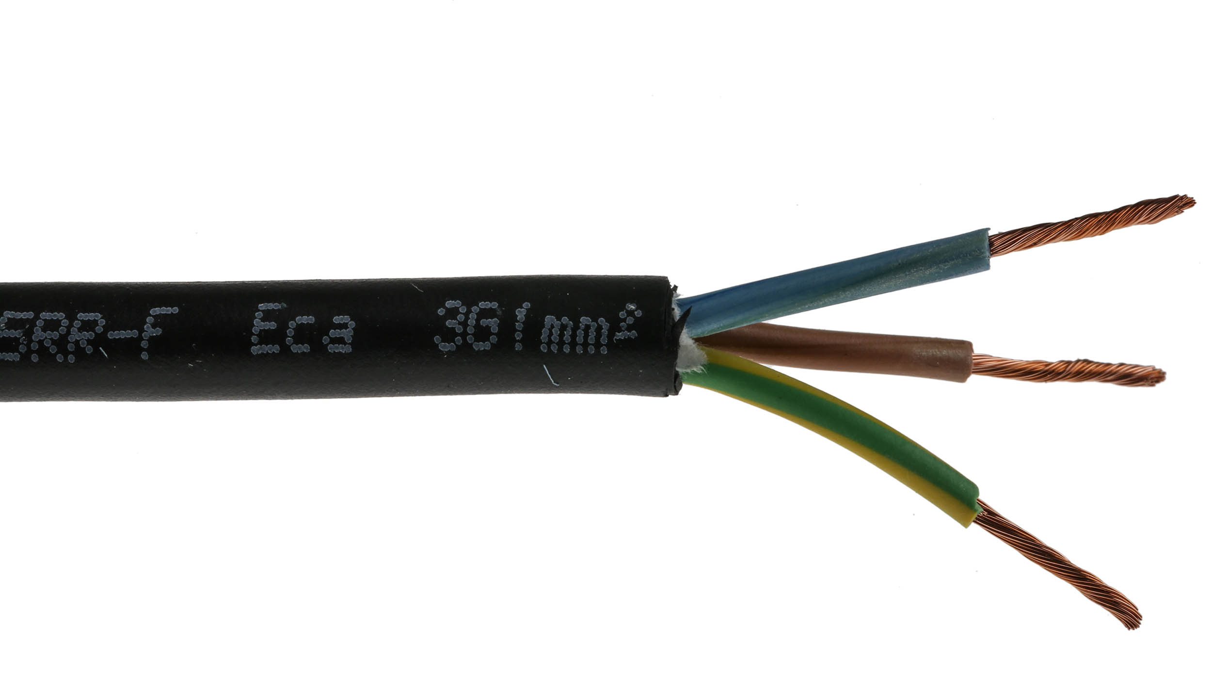 This is 3 Core 1 mm² Mains Power Cable Black Rubber Sheath 50m 13.5 A 300 V 500 V 318TRS H05RR-F manufactured by RS Pro. The manufacturer part number is 536-243. The product has 8.5 mm external diameter. The conductor is made from copper material. The product h05-rrf, h05rr-f, is a highly preferred choice for users. Whereas, the minimum operating temperature of the product is -25°c. The integrated conductor is a solid conductor. It carries a 300 v, 500 v of voltage. rubber is the jacket material of the product . The product consists of 3 cores. The cross section area of the cable includes 1 mm². power cable is a versatile product designed to provide user-defined applications. It has a maximum operating temperature of 60°c. Furthermore, the cable has a 50m of length.