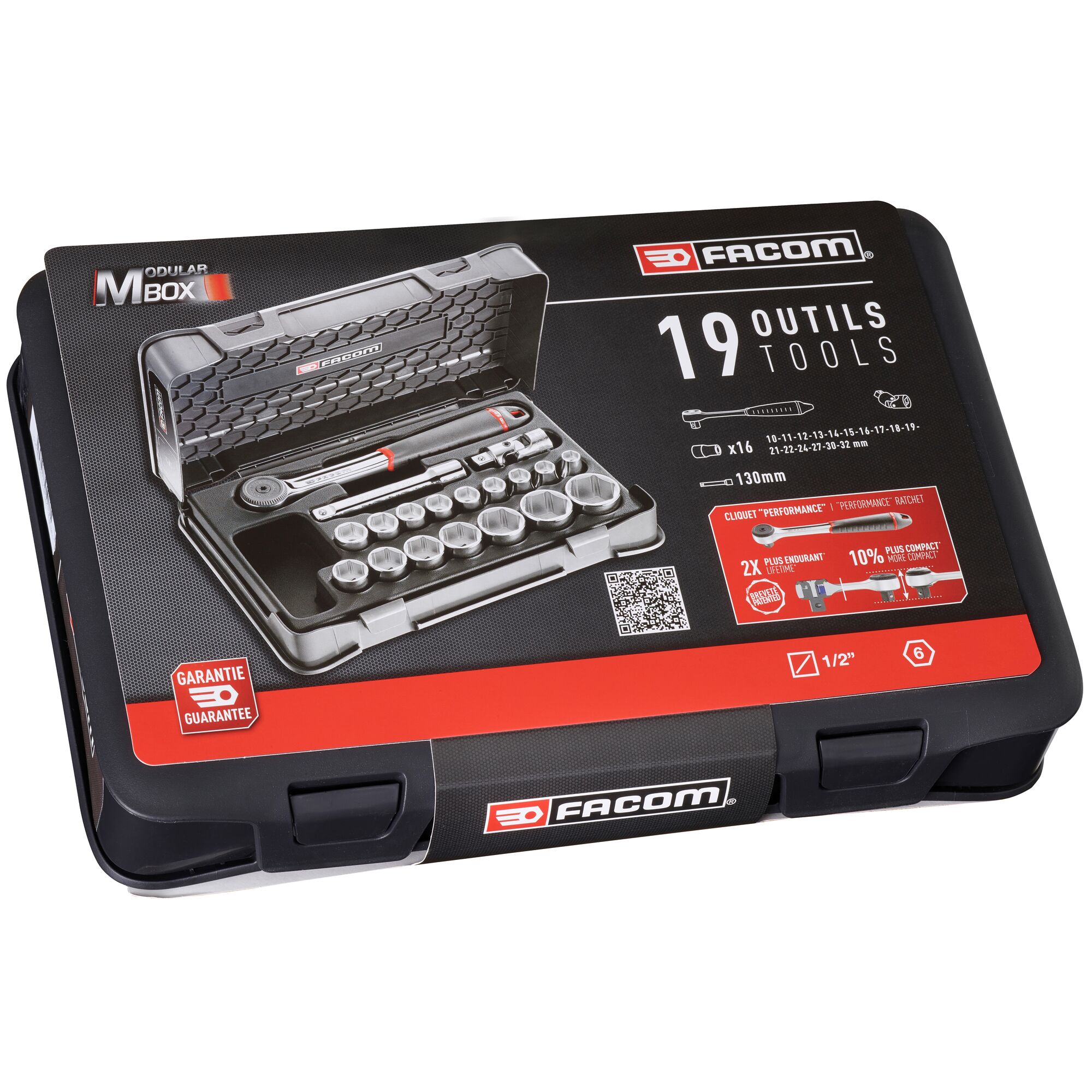 The Facom S.161-2P6PB is a professional-grade 19-piece socket set featuring the high-performance S.161B sealed round-head ratchet. Designed for the most demanding mechanical environments, this set utilises OGV® profile technology to transmit torque through the flats of fasteners rather than the corners, effectively reducing wear and rounding. The entire kit is housed in a robust, solvent-resistant MBOX storage case with a thermoformed tray, providing organised access to essential 1/2" drive metric sockets ranging from 10mm to 32mm for comprehensive heavy-duty maintenance.