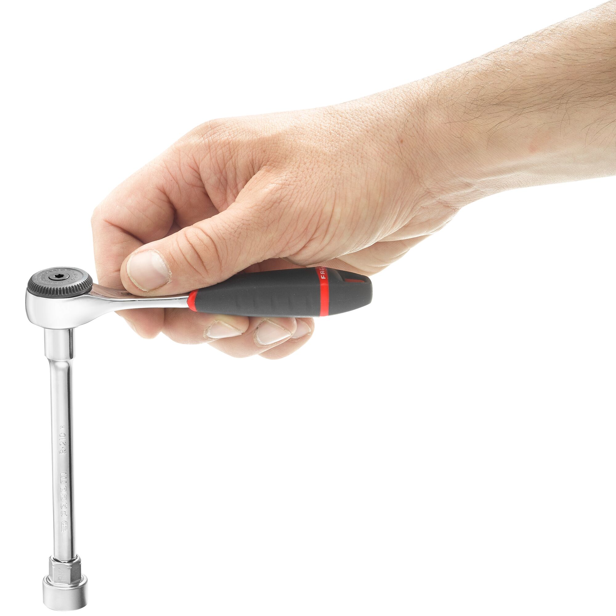 This is 1/4 in Square Drive Socket Wrench with Ratchet Handle 119.5 mm length manufactured by Facom. The manufacturer part number is R.161B. VDE/1000V Approval Options - no. A quality product with a nice chrome finish. The head has a round shape. The product features a square drive. The product is made from highly stable and reliable chrome vanadium steel. It has an overall length of 121.2mm. It has a model number r.161b. It is height safe no . The product has a drive size of 6.35 mm. ratchet is a versatile product designed to provide user-defined applications. Basically, this handle is a type of ratchet, allowing extreme comfort.