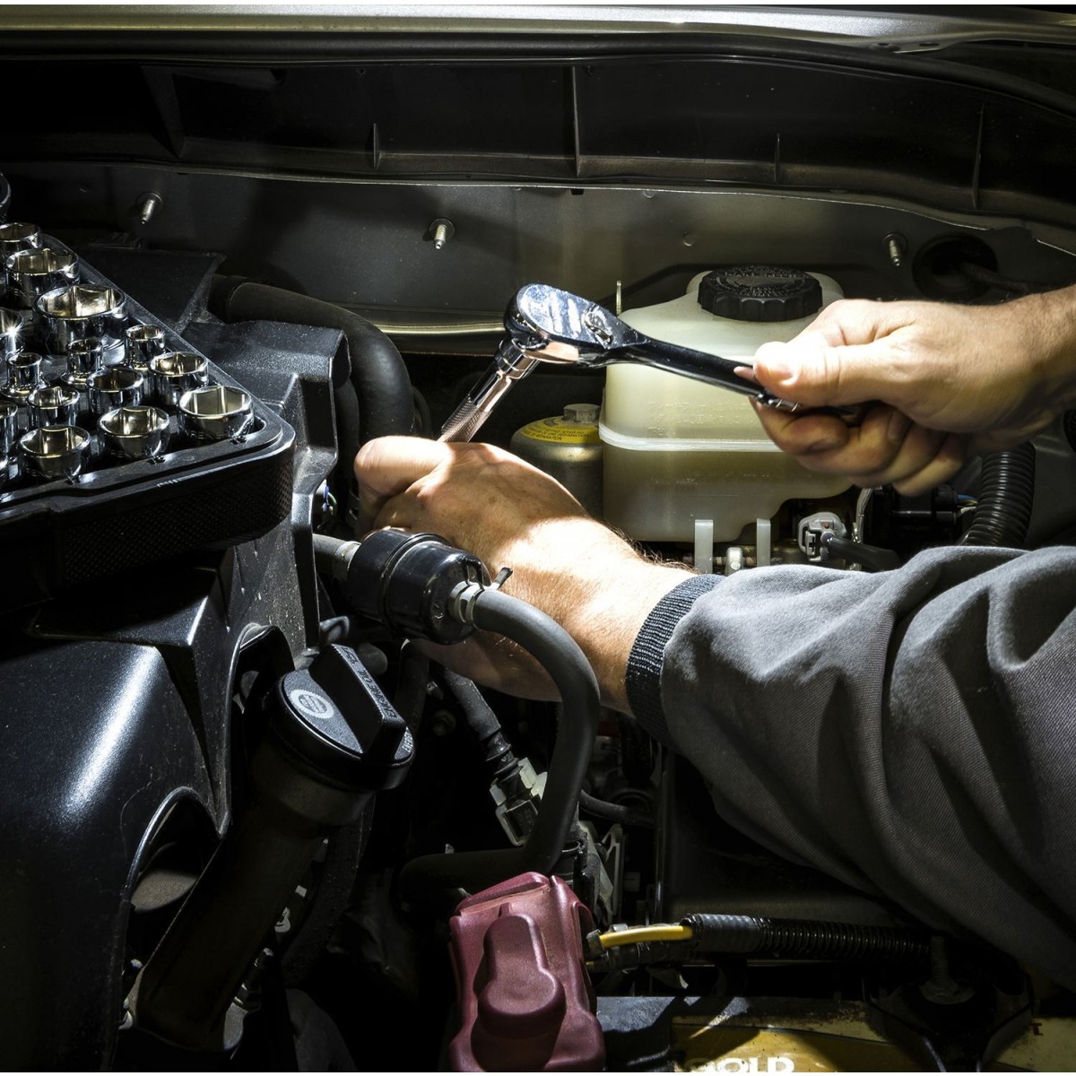 This is Gear Wrench 1/2 in Socket Wrench with Straight Handle manufactured by GearWrench. The manufacturer part number is 81304P. A quality product with a nice polished chrome finish. The product is made from highly stable and reliable steel. It has an overall length of 279.91mm. The product has a drive size of 12.7 mm. ratchet is a versatile product designed to provide user-defined applications. Basically, this handle is a type of straight, allowing extreme comfort.