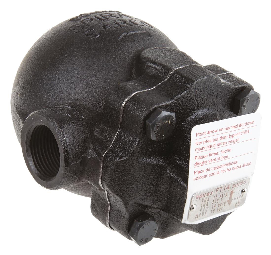 Ball Float Steam Trap FT14 Stainless steel internals that can tolerate corrosive condensate Integral automatic air venting facility Compact and lightweight reducing installation costs Immediate discharge with clean tight shut-off No back-up of condensate ensures maximum plant effieciency Robust construction to guarantee long life against waterhammer and vibration Large discharge capacity in relation to size Technical Specifications & Materials Max Operating Temp (°C) Body Material Cover Material Type Valve Seat Material Weight 250 DIN 1693 GGG 40//40.3 SG Iron DIN 1693 GGG 40//40.3 SG Iron BSP Female; FT14-4.5 BS 970 431 S29 Stainless Steel 2.9 kg Iron Steam Traps All units PN16 with Stainless Steel internal parts and Reinforced Exfoliated Graphite gaskets, Straight Orientation; Maximum Operating Pressure - 14bar g; Maximum Allowable Pressure - 16 bar g; Maximum Cold Hydraulic Test Pressure - 24bar g; Cover Bolts Material - BS 3692 Gr.10 Steel;