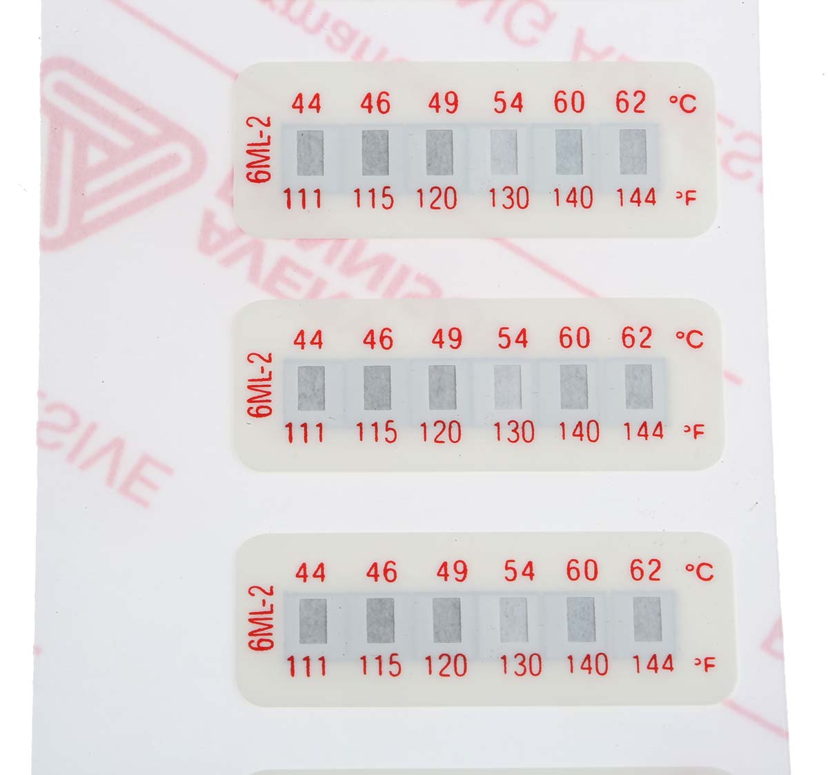 This is Non-Reversible Temperature Sensitive Label 44°C to 62°C 6 Levels manufactured by RS Pro. The manufacturer part number is 285-920. It includes 6 temperature levels . The product has a horizontal orientation. In addition, it has a standard label about 32mm in length . The product has a reversibility feature no . It has a maximum 62°c temperature sensitivity . It has 10 labels per product . It has a minimum 44°c temperature sensitivity . Its label is 12mm in width . temperature sensitive label is a versatile product designed to provide user-defined applications.