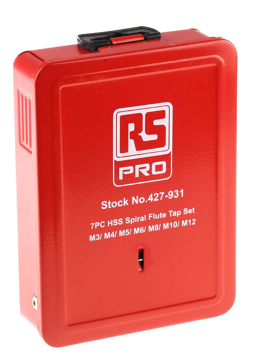 This is 7 Piece M12 HSS Spiral Flute Tap Set M3; M4; M5; M6; M8; M10; M12 manufactured by RS Pro. The manufacturer part number is 427-931. It has a hand tap . Its thread direction is to the right hand . The threaded is a metric standard. Its sub type is spiral flute . The product is made from highly stable and reliable hss. It has a typical thread size of m3 to m12. tap set is a versatile product designed to provide user-defined applications. The product consists of 7 pieces.