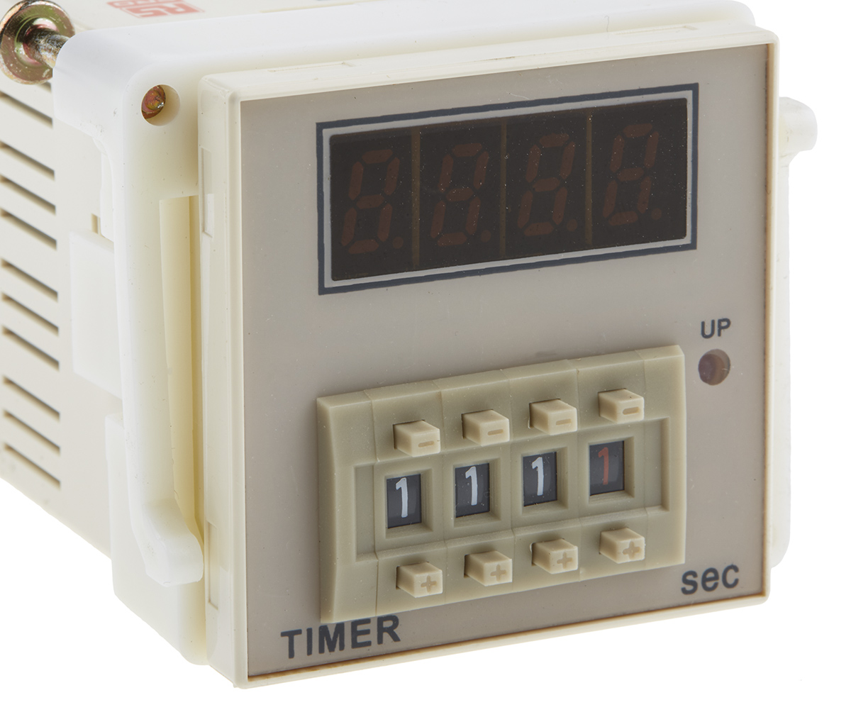 This is TCN. Digital Time Relay. Thumbwheel cont manufactured by RS PRO. The manufacturer part number is 179-2899. It performs basic function of power on-delay. The product contains 1 contacts. The product's switching voltage is 240 v ac. It has a standard 999.9 s time range . The contact is equipped with spdt configuration. Furthermore, the product is 48 mm wide. Its accurate length is 97.4mm. It includes a 1 functions timer . timer relay is a versatile product designed to provide user-defined applications. The terminal is a 8-pin type. It has a plug-in type mount .