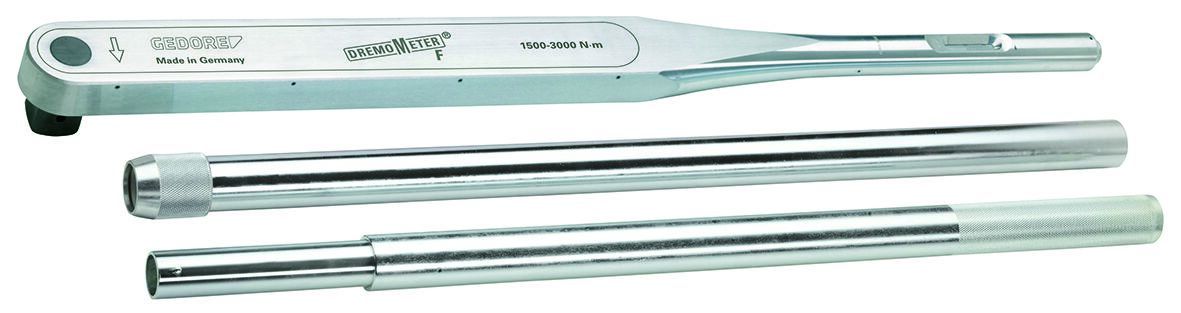 This is Torque Wrench 1500 to 3000 Nm 1.1/2 in Drive Square Drive manufactured by Gedore. The manufacturer part number is 7717160. Its driver is of a/an square shape . Its sub type is torque wrench . The product is made from highly stable and reliable aluminium alloy. Its scale graduations are about 50nm . In addition, its torque range is about 1500 to 3000 nm . It has an overall length of 1037mm. The product has a drive size of 1.1/2 in. torque wrench is a versatile product designed to provide user-defined applications. It provides high accuracy of ±3 %.