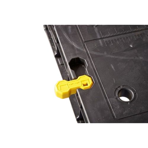 The Stanley STST83492-1 fold-up workbench is a versatile, portable workspace solution for professionals and DIY enthusiasts alike. With a robust polypropylene top and metal legs, it offers a substantial load capacity of 320kg, ensuring durability and stability during use. The workbench features a space-saving folding design that makes it easy to store and transport. An integral accessories tray provides convenient storage for tools and small parts, enhancing organisation and efficiency. Its automatic worktop locking mechanism ensures safety, while end latches enable multiple units to be connected for extended work surfaces.