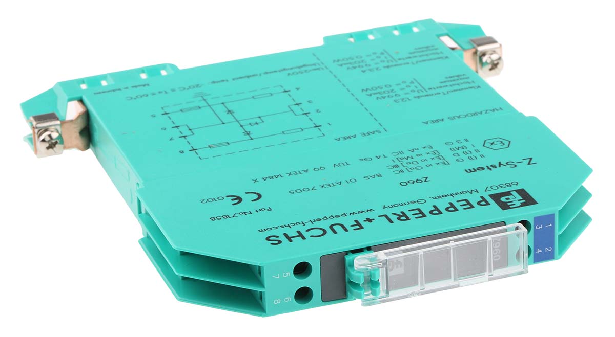 This is 2 Channel Zener Barrier with Analogue Output 250 V max 203mA max manufactured by Pepperl + Fuchs. The manufacturer part number is Z 960. It has a safety 64ω current resistance . It is a zener barrier barrier. The product z960, is a highly preferred choice for users. It is IP rated with ip20. The product is certified with atex hazardous area certification. It is supplied with 2 channels. Features 10 v ac supply voltage. Whereas, the minimum operating temperature of the product is -20°c. zener barrier is a versatile product designed to provide user-defined applications. It has a maximum operating temperature of 60°c. The terminal is a screw type. It has a din rail type mount .