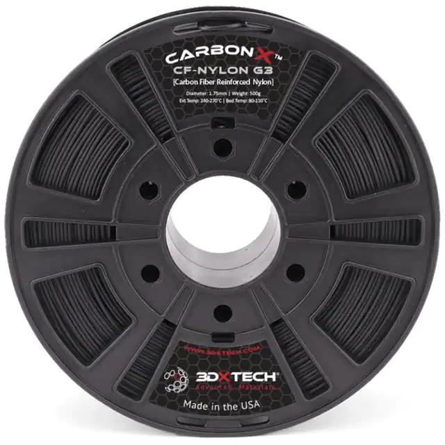 This is manufactured by 3DXTECH. The manufacturer part number is NYL3010500BK0. The product is rohs3 compliant. It has 0.070" (1.75mm) of filament diameter. The product has 240°c ~ 270°c operating temperature range. The product has a 1.17g/cm³ density. In addition, it is reach unaffected. While 84mpa is its flex strength. It is shipped in box package . The filament is manufactured from rugged nylon material. The product has an added tensile strength of 63mpa. Its typical moisture sensitivity level is 1 (unlimited). The splendid features of the product include carbon fiber fill. It has a classic black colour.