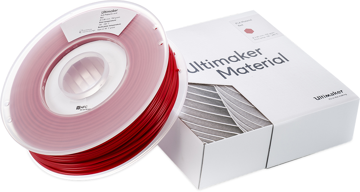 This is 2.85mm Red PLA 3D Printer Filament 750g manufactured by Ultimaker. The manufacturer part number is 1618. It is designed using fdm printing technology . Its diameter is 2.85mm. The typical product's weight is 750g. It is machine specific no . It has a decent red colour. Its material is of pla type . It has the capability to print on pla material .