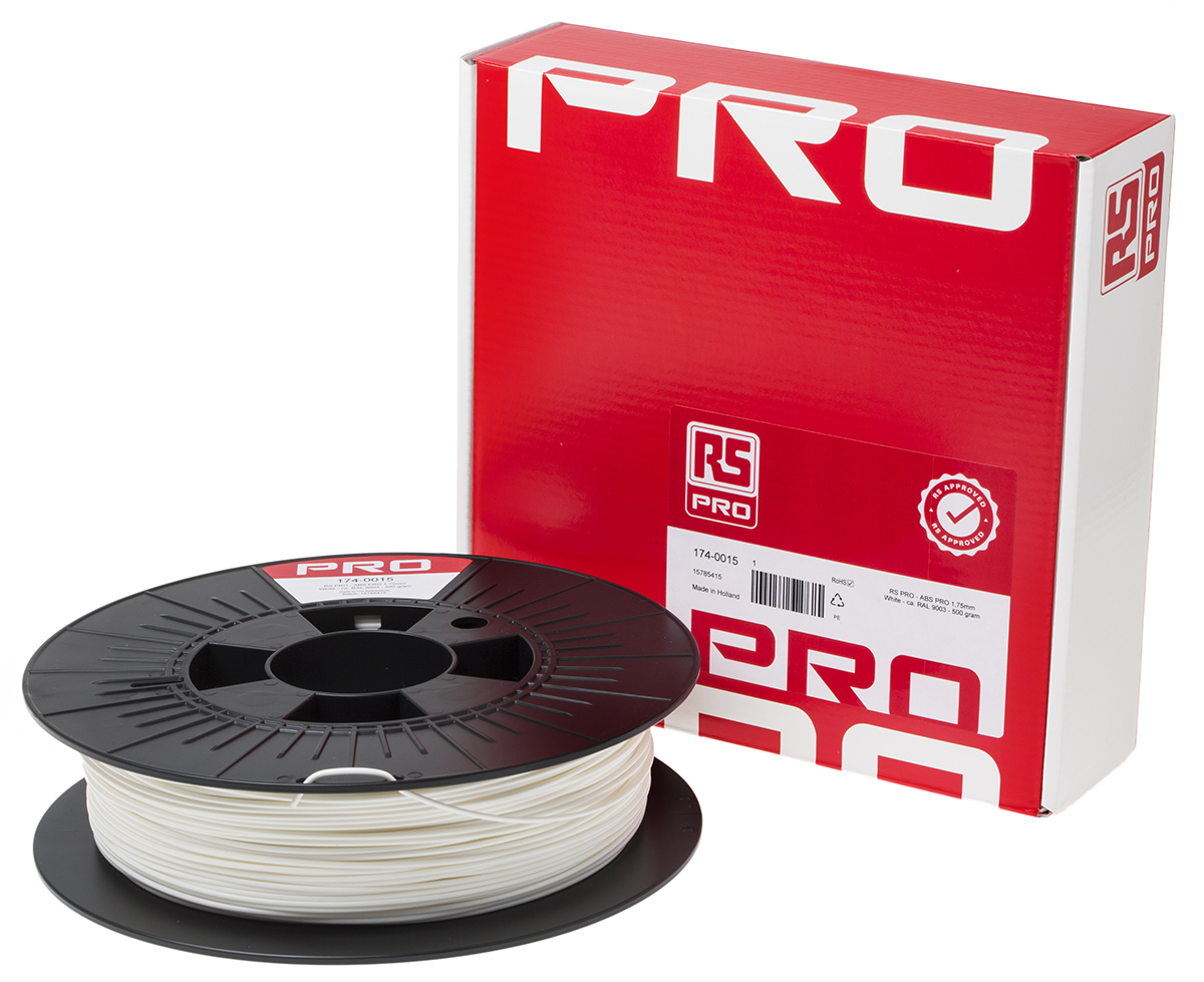 This is 1.75mm White ABS 3D Printer Filament 500g manufactured by RS Pro. The manufacturer part number is 174-0015. It is designed using fdm printing technology . Its diameter is 1.75mm. The typical product's weight is 500g. It is machine specific no . It has a decent white colour. Its material is of abs type . It has the capability to print on abs-x material . The product is highly suitable for common desktop 3d printers.