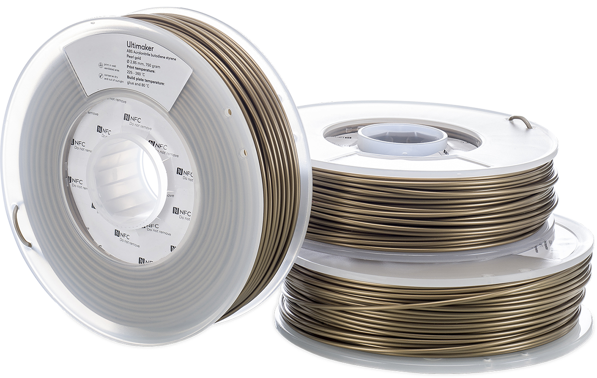 This is 2.85mm Gold ABS 3D Printer Filament 750g manufactured by Ultimaker. The manufacturer part number is 1626. It is designed using fdm printing technology . Its diameter is 2.85mm. The typical product's weight is 750g. It is machine specific no . It has a decent gold colour. Its material is of abs type . It has the capability to print on abs material .