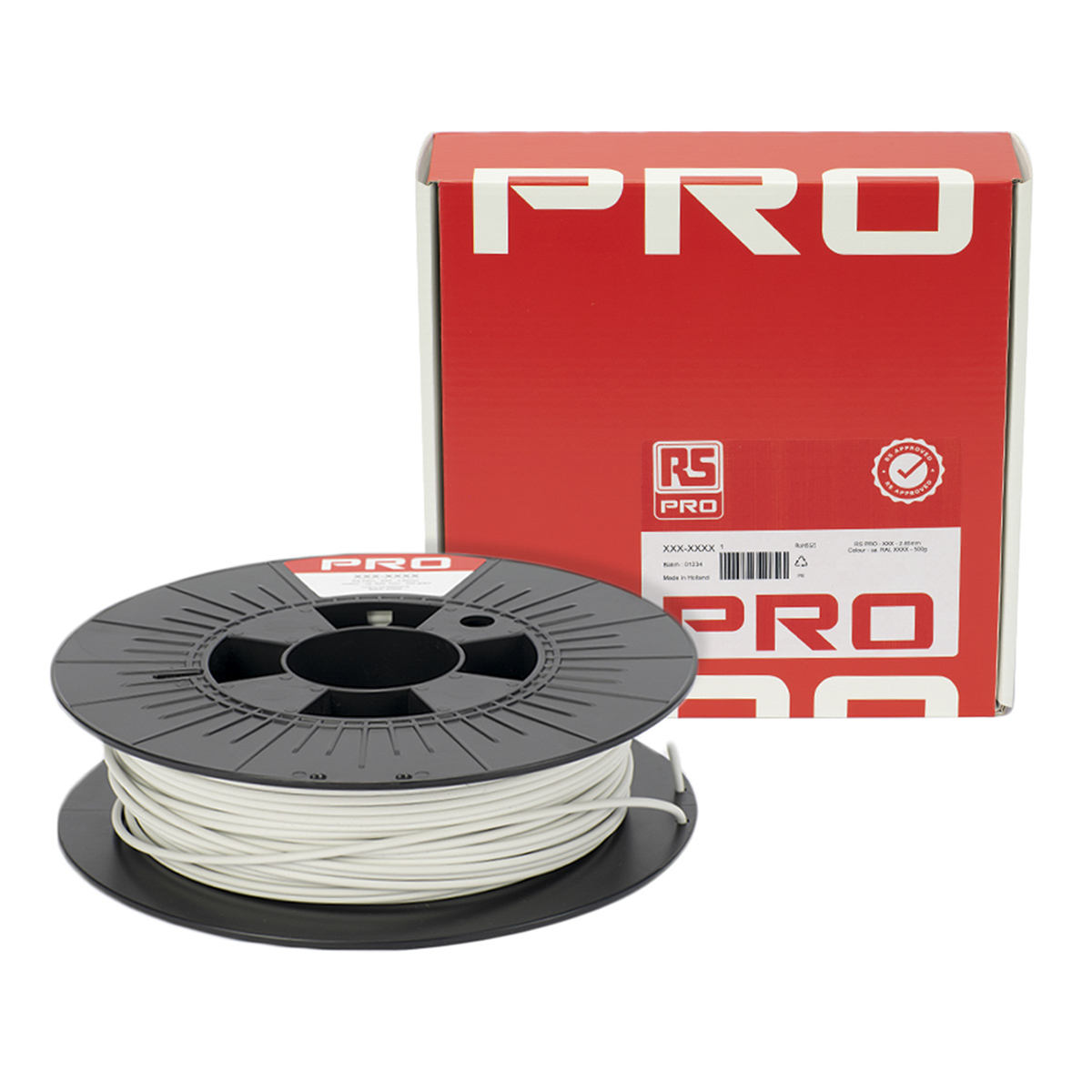 This is MATTE PLA 285mm White 500 gram manufactured by RS PRO. The manufacturer part number is 183-0249. It is designed using fdm printing technology . Its diameter is 2.85mm. The typical product's weight is 500g. It has a decent white colour. Its material is of pla type . It has the capability to print on pla matt material . The product is highly suitable for common desktop 3d printers.