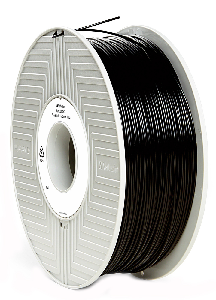 This is 1.75mm Black PLA 3D Printer Filament 1kg manufactured by Verbatim. The manufacturer part number is 55318. It is designed using fdm printing technology . Its diameter is 1.75mm. The typical product's weight is 1kg. It is machine specific no . It has a decent black colour. Its material is of pla type . It has the capability to print on pla material .