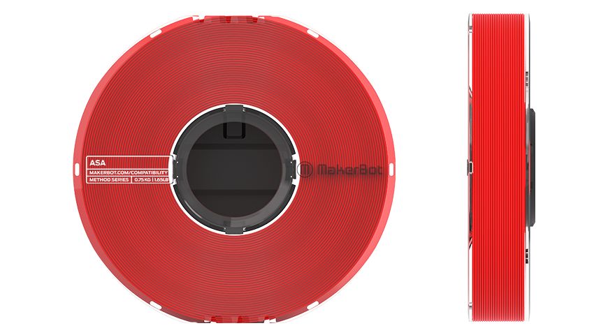 This is 1.75mm Red ASA 3D Printer Filament 650g manufactured by Ultimaker. The manufacturer part number is 375-0035A. It is designed using fdm printing technology . Its diameter is 1.75mm. The typical product's weight is 650g. It is machine specific yes . It has a decent red colour. Its material is of asa type . It has the capability to print on asa material . The product is highly suitable for method series.