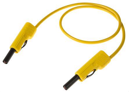 This is 4 mm Test lead 16A 60V dc Yellow 50cm Lead Length manufactured by Hirschmann Test & Measurement. The manufacturer part number is 973 645103. The product has a current rating of 16a. Moreover, the product has a nominal 60v dc voltage rating. The lead is 50cm long. It has a decent yellow colour. The product has -15 → +70 °c of operating temperature range. On the other hand, the connector B has straight orientation. While connector B has a male gender. It has a robust pvc insulation material. Whereas, the minimum operating temperature of the product is -15°c. The connector A has straight orientation. It has a maximum operating temperature of +70°c. Connector A is a male allowing user-desired applications. The product is made from sturdy beryllium copper materials.