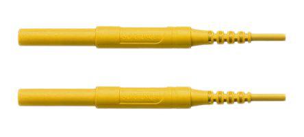 This is 4 mm Test lead 16A 1000V Yellow 2m Lead Length manufactured by Schutzinger. The manufacturer part number is HSPL 7576 / 1 / 200 / GE. Its connector B is stackable yes . The product has a current rating of 16a. Moreover, its safety category level is cat iv . Moreover, the product has a nominal 1000v voltage rating. The lead is 2m long. It has a decent yellow colour. Its safety category voltage is 1000v . Its connector B is shrouded yes . Its connector A is shrouded yes . It provides robust safety and is complied with cat iv safety category. On the other hand, the connector B has straight orientation. While connector B has a male gender. It has a robust pa 6.6 insulation material. Whereas, the minimum operating temperature of the product is -10°c. The connector A has straight orientation. The product has -10 → +90 °c of operating temperature range. It has a maximum operating temperature of +90°c. Connector A is a male allowing user-desired applications. The product is made from sturdy nickel plated beryllium copper materials.