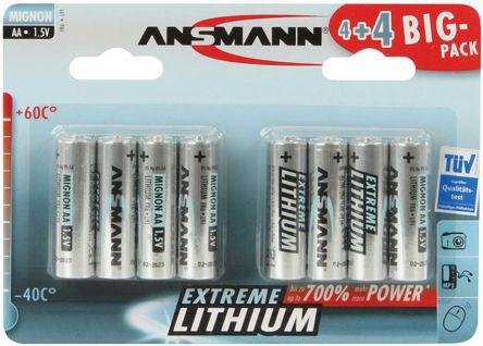 This is Extreme Lithium Iron Disulfide AA Battery manufactured by Ansmann. The manufacturer part number is 1512-0012. The product is available in aa size. The nominal voltage of the product is 1.5v. It has a/an lithium iron disulfide chemistry . The terminal is a standard type. Its brand range is ansmann extreme .