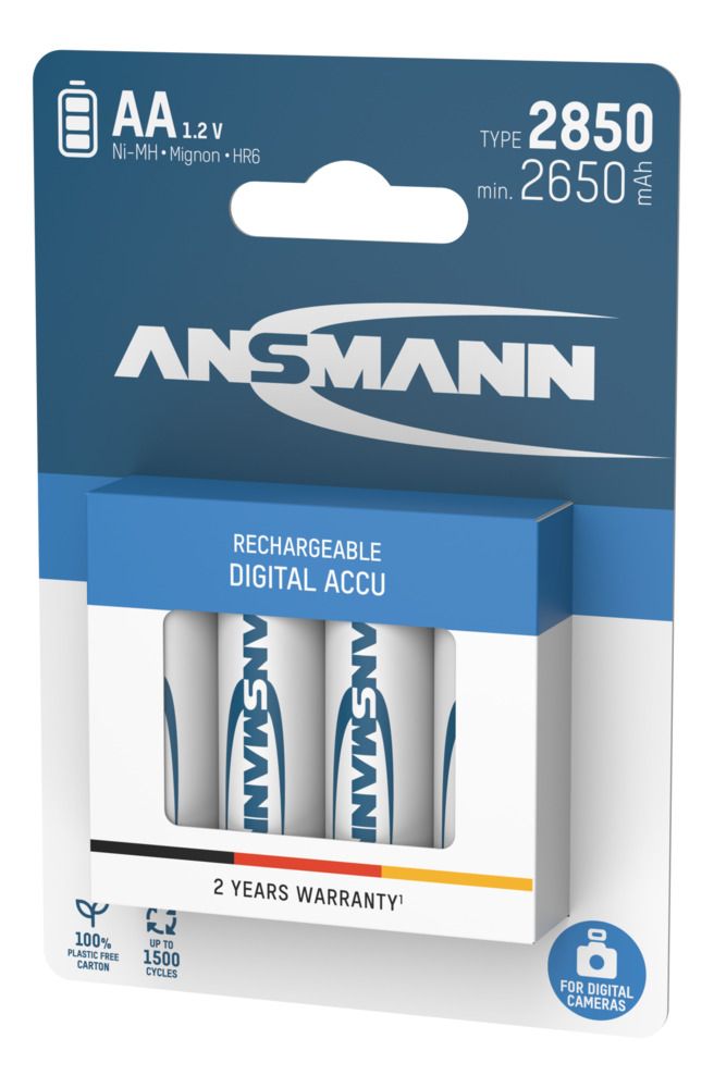 This is NiMH Rechargeable AA Batteries 2850mAh manufactured by Ansmann. The manufacturer part number is 5035092. The module has the capacity of 2.85ah. The product has -20 → +50°c of operating temperature range. The number of supplied batteries is/are 4 . Whereas, the minimum operating temperature of the product is -20°c. The nominal voltage of the product is 1.2v. It has a/an nimh chemistry . It has a maximum operating temperature of +50°c. The terminal is a standard type. The product is available in aa size.