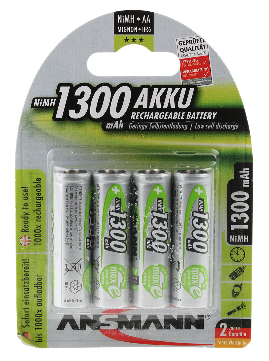 This is MaxE Precharged NiMH Rechargeable AA Batteries 1300mAh manufactured by Ansmann. The manufacturer part number is 5030792. It has a low self discharge characteristic yes . The module has the capacity of 1.3ah. The product has -20 → +65°c of operating temperature range. The product is available in aa size. The number of supplied batteries is/are 4 . The nominal voltage of the product is 1.2v. It has a/an nimh chemistry . The terminal is a standard type. Its brand range is ansmann maxe .