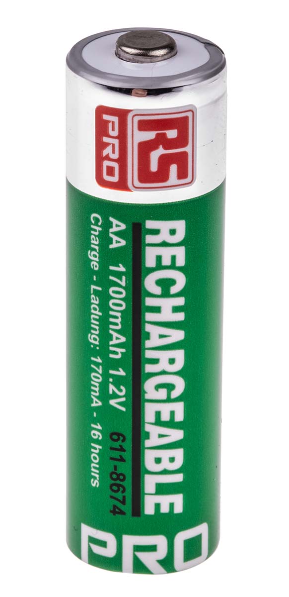 This is NiMH Rechargeable AA Batteries 1.7Ah manufactured by RS Pro. The manufacturer part number is 611-8674. The module has the capacity of 1.7ah. The product has -20 → +65°c of operating temperature range. The number of supplied batteries is/are 4 . The nominal voltage of the product is 1.2v. It has a/an nimh chemistry . The terminal is a standard type. The product is available in aa size.