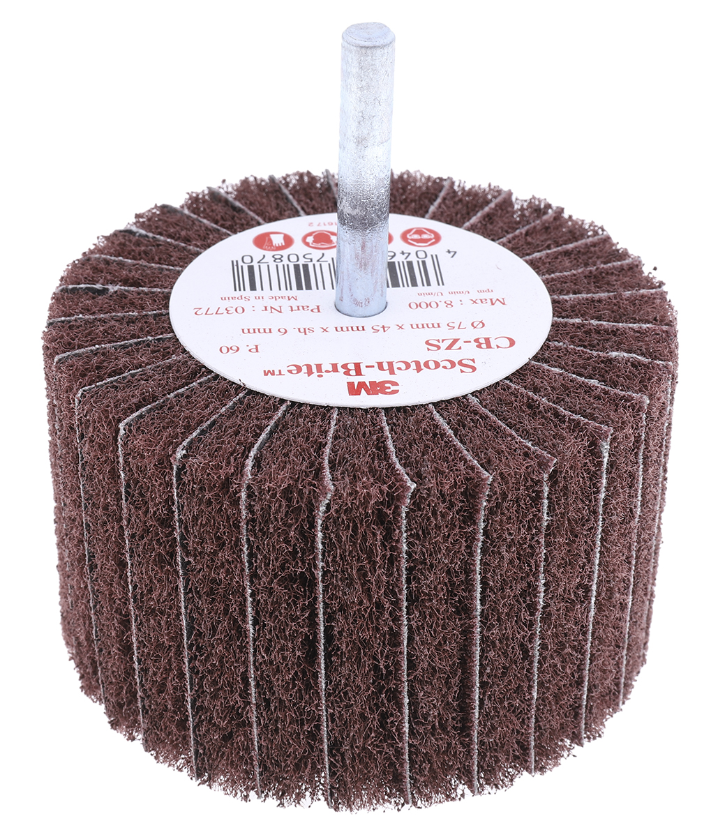 Scotch-Brite™ CB-ZS / 3M™ 450 combi discs Disc with alternate abrasive flaps and Scotch-Brite™ fitted to a 6 mm shaft. A single tool for removing material and finishing: the abrasive flaps provide a supported cut and the Scotch-Brite™ blades produce a smooth visual finish. For steels, stainless steels and non-ferrous metals.