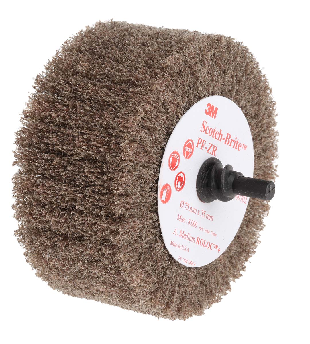 This is Nylon Flap Wheel 120 Grit 75mm x 35mm manufactured by 3M. The manufacturer part number is FLAP BRUSH 75 X 35MM AMED. It has a maximum 700rpm safe speed . Its diameter is 75mm. It has a model roloc +. The product has a high-quality circular type brush . It has a standard p120 grit size .