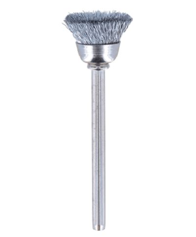 This is Steel Cup Abrasive Brush 13mm Diameter manufactured by Bosch. The manufacturer part number is 26150442JA. Its diameter is 13mm. The product has a high-quality cup type brush . Its bristle is 15 in length . It has a 3.2mm fixing size . It has a maximum 15000 safe speed . Its bristle is made using high-quality steel material . It has a/an shank type fixing .