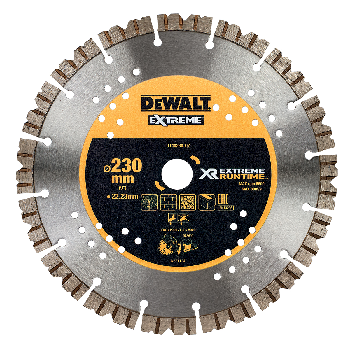 This is 230 x 22.23mm Extreme Diamond Wheel manufactured by DeWALT. The manufacturer part number is DT40260-QZ. The product is medium, a grade of class. It has a standard p40 grit size . Additionally, it includes a cutting disc type disc . It is manufactured from rugged d-paper abrasive materials.