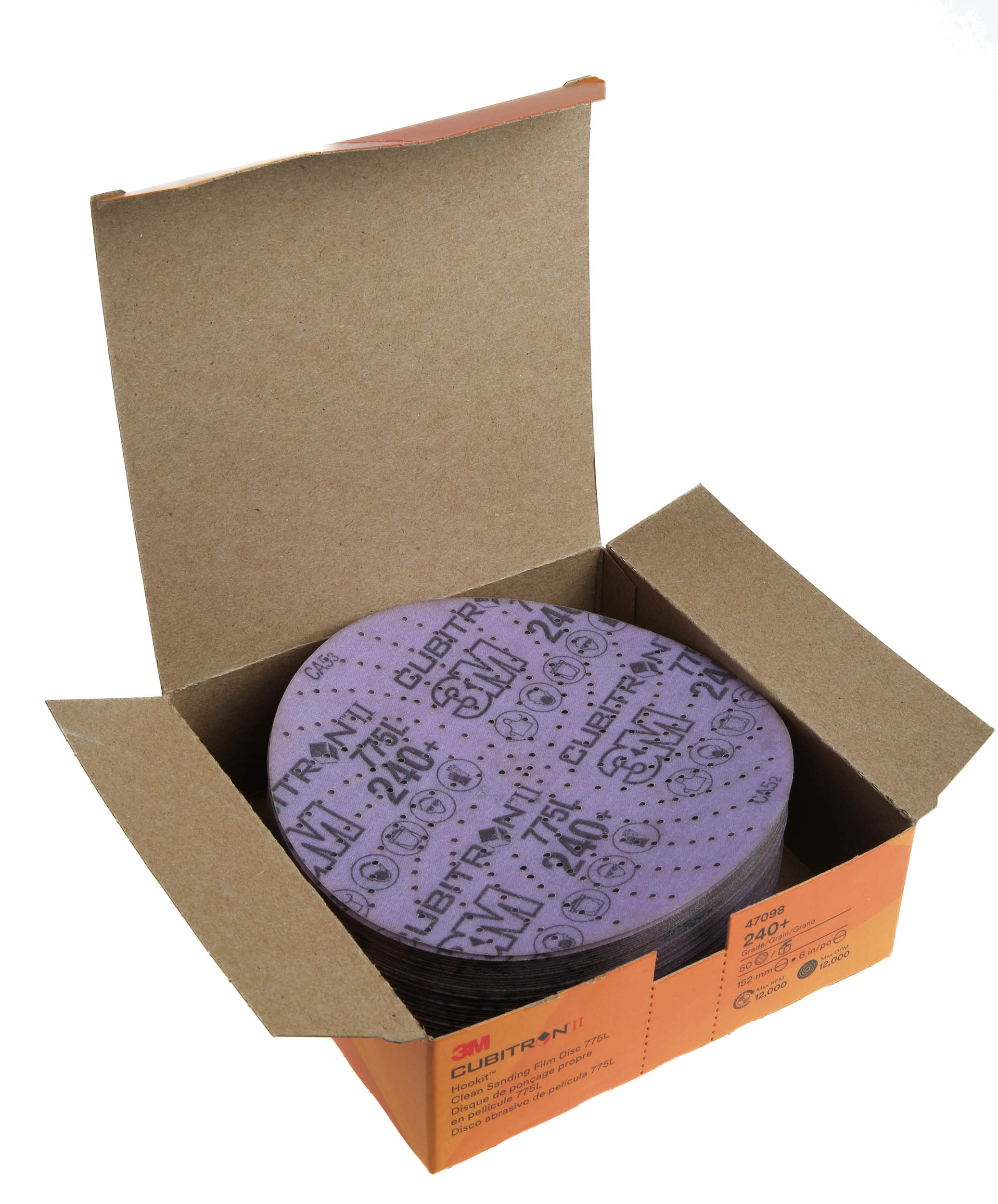 This is 775L 150mm Ceramic Sanding Disc 240+ Grit manufactured by 3M. The manufacturer part number is 47098. It has a standard round shape disc . It has 50 items per pack . The product is 240+, a grade of class. The product cubitron ii, is a highly preferred choice for users. It has a maximum 10000rpm safe speed . It has a standard p240 grit size . Additionally, it includes a sanding disc type disc . It is manufactured from rugged ceramic abrasive materials. It has a model 775l. Its overall disc diameter is 150mm .