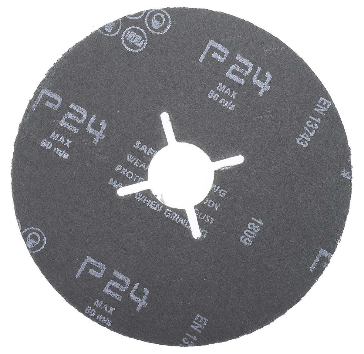 This is Zirconia Aluminium Fibre Disc 115mm Diameter manufactured by RS PRO. The manufacturer part number is 188-3387. It has a standard round shape disc . It has 25 items per pack . The product is 36+, a grade of class. It has a maximum 13300rpm safe speed . It is 1mm thick. Applications Information involves stock removal, blending & finishing. It has a standard p36 grit size . Additionally, it includes a flap disc type disc . It is manufactured from rugged zirconium abrasive materials. In addition, it has stainless steel, steel cut material . Its overall disc diameter is 115mm .