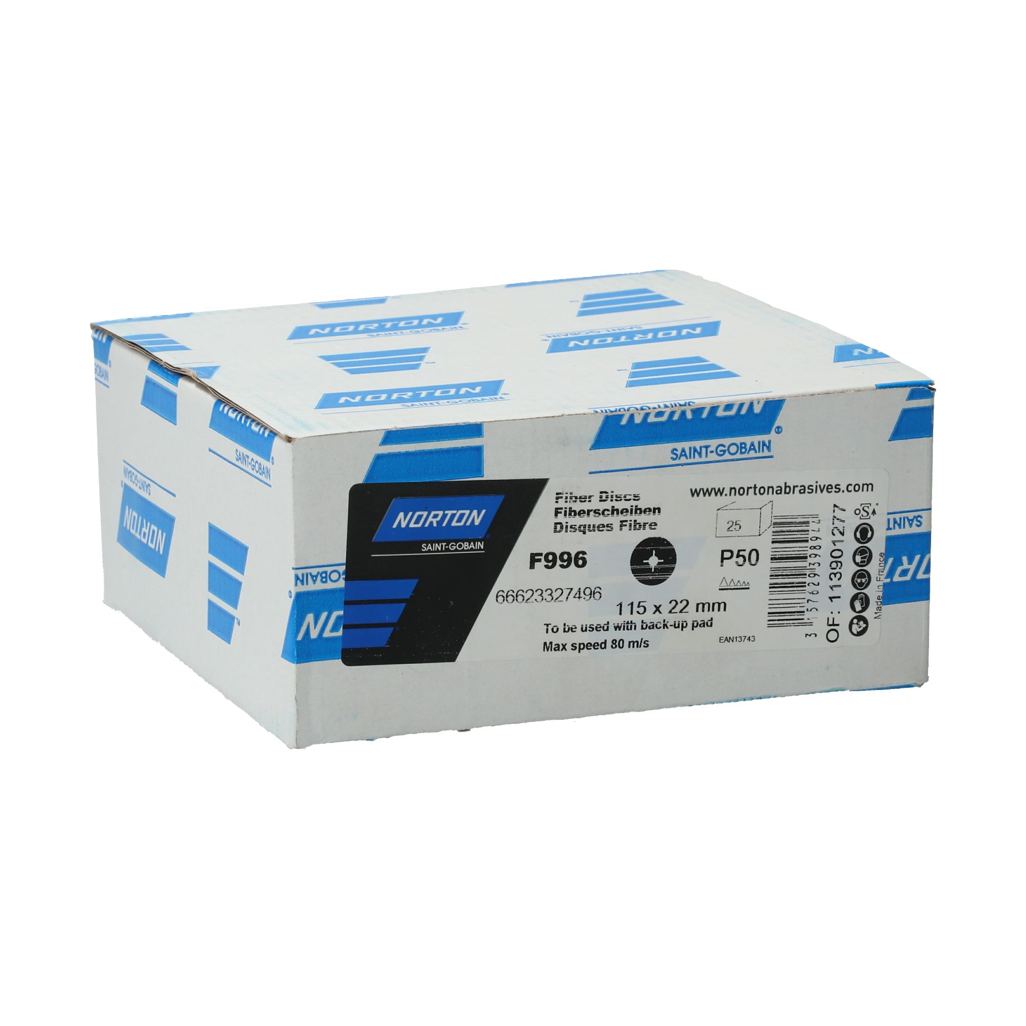 Norton's 50-grit fiber disc with a bore size of 22 mm is made of ceramic abrasives that ensure user-desired finishing applications with added comfort.