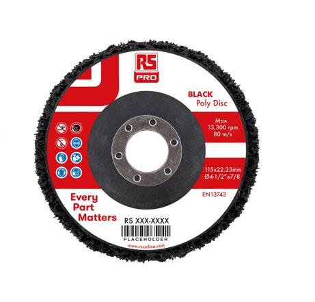 This is Resin Grinding Disc 115mm 10 in pack manufactured by RS PRO. The manufacturer part number is 220-5877. It has a standard round shape disc . It has 10 items per pack . The bore has a 22mm size. It has a maximum 13,200rpm safe speed . In addition, it has aluminium, cast iron, mild steel, non-ferrous metals, stainless steel cut material . Additionally, it includes a grinding disc type disc . It is manufactured from rugged resin abrasive materials. Its overall disc diameter is 115mm .