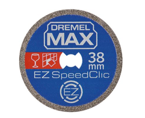 This is Dremel Max Diamond Cutting Disc 38mm x 1mm Thick SC545DM 1 in pack manufactured by Bosch. The manufacturer part number is 2615S545DM. It has 1 items per pack . The product dremel max, is a highly preferred choice for users. The bore has a 3.2mm size. It is 1mm thick. Additionally, it includes a cutting disc type disc . It is manufactured from rugged diamond abrasive materials. It has a model sc545dm. Its overall disc diameter is 38mm .